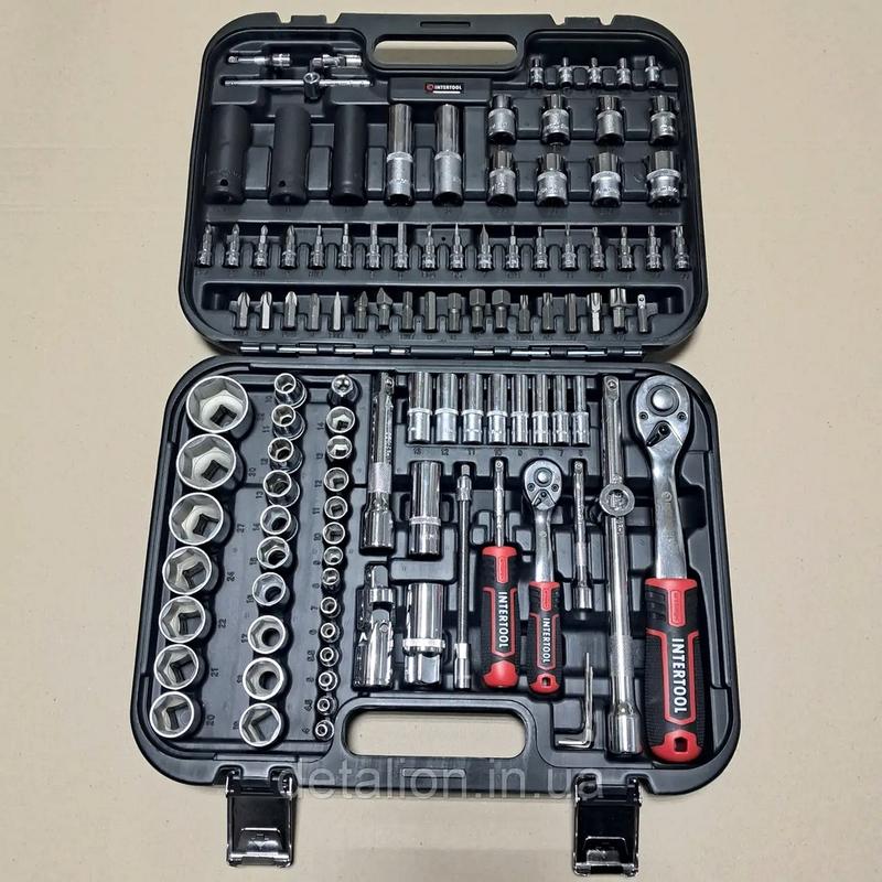 Набір інструменту для автомобіля 111ед, NST Набори інструментів INTERTOOL STORM — це нове слово на підтримку якості та багатофункціональності! Завдяки своїй практичності ідеально підходять для автолюбів і домашніх майстрів. Широкий вибір інструментів дає змогу впоратися майже з будь-яким типом кріплення, що дуже виручає під час раптових поломок у дорозі та під час ремонтних робіт у гаражі. Інструмент на всі випадки У наборі зібрані всі необхідні інструменти для комфортної роботи з різними вузлами автомобіля. Подовжувачі, кардани, гнучкий подовжувач і Г-подібні шестигранні ключі дають змогу дістатися важкодоступних місць. З таким широким вибором біт і головок (SL, PZ, PH, TORX, HEX) ви готові впоратися майже з будь-яким типом кріплення! У наборі: - 3 подовжені головки зі Сr-Mo стали найпопулярнішими розмірами (17 мм, 19 мм, 21 мм) для роботи з ударним гайковертом. - Головки шестигранні захоплюють діапазон від 4 до 32 мм і допомагають відкрутити майже будь-який болт або гайку. - Головки подовжені шестигранні розв'язують питання кріплення, розміщеного в заглибленні, 6-21 мм. - Головки Е-тип (Torx) підходять для спеціальних видів болтів і гайок, можуть застосовуватися під час ремонту двигуна та ходової автомобіля, E4 — E24. - Свічкові головки з вловлювачем допомагають змінити свічки без особливих зусиль, 16 мм і 21 мм. Зручні та якісні тріскачки У наборі дві тріскачки на 1/2" і 1/4" з кнопкою для скидання та фіксації головок, а також перемикачем напрямку. Храповий механізм тайванського виробництва на 72 зуби забезпечує м'якість ходу та дає змогу працювати в умовах обмеженого простору. Невеликий вигин ручки збільшує комфорт під час роботи з незручно розташованими кріпленнями. Трикомпонентна прогумована ручка покращує фіксацію інструмента в руці, навіть у разі потрапляння мастила або мазута. Тріскачка добре очищається від бруду за допомогою тканини. Ударні головки Ключовою особливістю набору стали подовжені ударні головки з Cr-Mo сталі, найпопулярніших розмірів для обслуговування автомобіля (17 мм, 19 мм, 21 мм). Вони з легкістю витримують високі навантаження без деформації та готові впоратися навіть із найскладнішими завданнями. Різноманітність інших торцевих головок дає змогу виконувати переважно важливу більшість завдань під час ремонту автомобіля. Насічки в місці захоплення (по центру головки) запобігають прослизанню в руках. Довговічність і зносостійкість Всі шестигранні головки (крім трьох ударних), воротки, подовжувачі, тріскачки та кардани виготовлені з Cr-V 50BV30 сталі, завдяки чому отримали оптимальний показник міцності та довговічності. Подвійне нікельоване покриття захищає їх від корозії й окиснення. Біти та викруткові насадки виготовлені з Cr-V 6150 сталі та вирізняються своєю міцністю, не злизаються й не гнуться під час роботи. Протиударний кейс Велика увага в цьому наборі інструментів приділили кейсу для зберігання, цьому свідчить надійність конструкції, міцність металевих замків і петель, а також яскравий дизайн. З таким компактним розміром (37.5*29.5*8.5 см) для нього завжди знайдеться місце в багажнику Вашого автомобіля, а також у майстерні, гаражі або в будинку. Комплектація * * * Тріскачкова ручка 1/2", 72 зуби, реверсійна; Головка шестигранная торцевая 1/2", 17 шт.: 10, 11, 12, 13, 14, 15, 16, 17, 18, 19, 20, 21, 22, 24, 27, 30, 32 мм; Головка E-тип (Torx) 1/2", 8 шт.: Е10, Е11, Е12, Е14, Е16, Е18, Е20, Е24; Головка шести