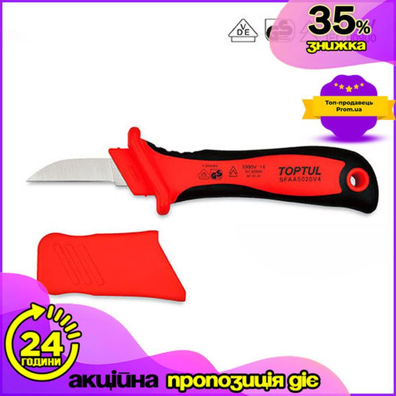 Ніж кабельний діелектричний toptul 1000v vde sfaa5020v4 пряме лезо для зачистки товстих пр...