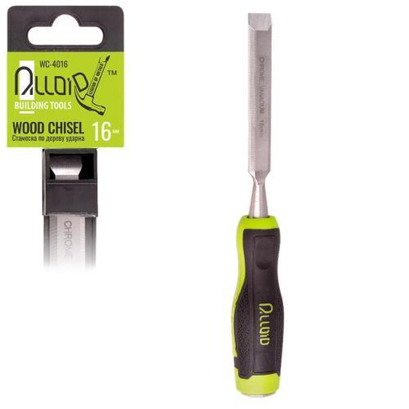 Стамеска по дереву ударна 16мм (WC-4016) Alloid Стамеска Alloid по дереву ударна з обрезиненной ручкою використовується для вибірки гнізд і пазів, вирізання отворів в деревині твердих і м'яких порід з використанням молотка або киянки. Чудове рішення як для професійних столярних майстерень, так і для домашніх майстрів. Переваги: - Інструмент виготовлений з високоякісної хромованадіевой стали, посилена і ударостійка, що гарантує високий комфорт роботи; - Двокомпонентна ударна рукоятка ергономічної форми забезпечує зручне захоплення, виключає прослизання інструменту в руці; - Стамеска Alloid фіксується на спеціальному підвісі укомплектований знімним захисним ковпачком для зручного зберігання стамески Alloid та захисту майстра від травм