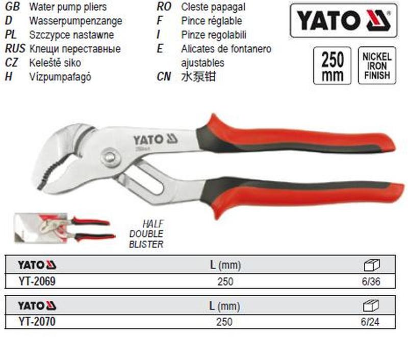 Клещи кліщі переставні l=250 мм yato польща yt-2070