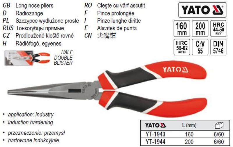 Щипці yato польща видовжені пласкі l=160 мм yt-1943