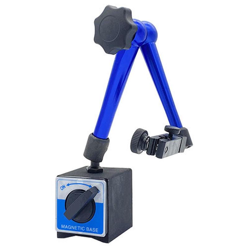 Тримач для індикаторів на магнітній основі, 80 кг, 380 мм PROTESTER MAMB8038 Тримач для індикаторів на магнітній основі — це пристрій, який використовується для закріплення індикаторів або вимірювальних приладів на металевих поверхнях за допомогою магнітної сили. Такий тримач зазвичай складається з двох основних компонентів — магнітної основи та механізму кріплення для індикатора. Магнітна основа має сильний магніт, що забезпечує міцне та надійне закріплення на металевій поверхні. Вона може мати різні форми та розміри, щоб відповідати потребам індикатора та забезпечити стабільну фіксацію. Механізм кріплення для індикатора зазвичай містить рухомий затискач або кульовий суглоб, що дає змогу точно налаштувати положення індикатора та фіксувати його в потрібному положенні. Це дає змогу забезпечити точне вимірювання або спостереження за зміною значень на вимірювальному приладі. Тримач індикаторів на магнітній основі є зручним інструментом для роботи в різних галузях, включно з машинобудуванням, автомобільною промисловістьією, металообробкою та іншими технічними застосуваннями. Він дає змогу операторам легко закріплювати індикатори на будь-якій металевій поверхні, забезпечуючи стабільну позицію та точні вимірювання.