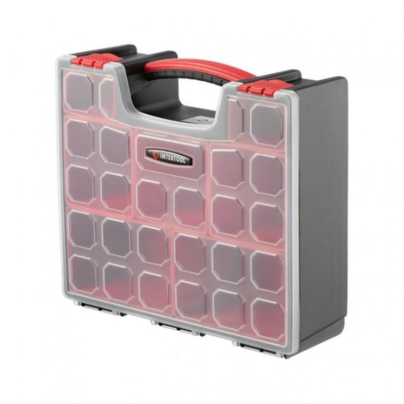 Зручний і місткий органайзер BX-4032 (31.5х27х11 см) підходить для зберігання і транспортування невеликих предметів (кріпежних елементів, дрібних інструментів, метизів, фурнітури, запчастин, рибальського приладдя та інших дрібниць). Особливості: - Місткий органайзер із двома надійними замками. - Нічого не випадає, не перемішується завдяки окремим секціям. - Глибокі знімні лотки (секції), завтовшки 11 см, можуть застосовуватися як окремі одиниці для зберігання дрібних деталей поза органайзером. Органайзер виготовлений із міцного товстого пластику. Вміщує 7 об'ємних лотків (секцій) різних розмірів. Великі та менші лотки можна міняти місцями, комбінувати їх розташування для максимальної зручності використання. У цей органайзер можна покласти будь-який інструмент завдовжки до 31 см і завширшки до 27 см, завдяки знімним лоткам. Два замки надійно притискають кришку та не дають пересипатися навіть невеликим деталям. Кришка органайзера виготовлена з міцного поліпропілену та стійка до відколів. Прозорість допомагає швидко знаходити необхідні предмети. Зручна ручка посилена та повторює форму руки, що дуже зручно під час транспортування.
