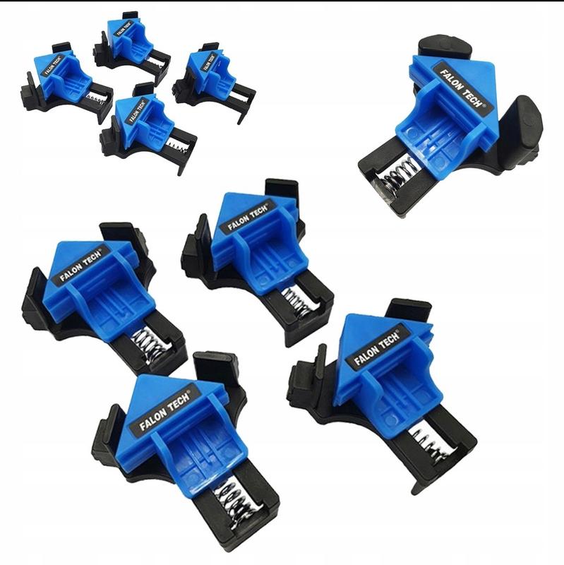 Струбцина столярна УГОЛ 4 шт. Falon Tech ОПИС: Для дощок завтовшки 5-22 мм. До комплекту входять 4 дерев'яні кутові затискачі. Легке кріплення дощок і рам під кутом 90°, наприклад, під час встановлення полиць, невеликих шаф і рам, а також пили під кутом 45 градусів, Для Т-подібних і кутових з'єднань, зокрема для плит різної товщини. Стопорний трикутник рухомий, що дає змогу одночасно працювати з різною товщиною. Пружина міцна, затискає максимум 22 мм. щонайменше 5 мм