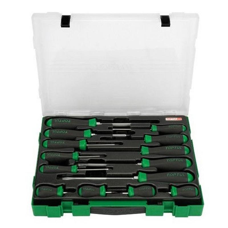 Професійний набір викруток 14 од. TOPTUL GZC1401. Викрутка - це один із затребуваних і часто експлуатується слюсарний інструмент для вкручування і відгвинчування кріпильних деталей з різьбою і шліцом (паз) на голівці. Існує широкий вибір викруток, таких як хрестові, шліцьові, ударного типу, універсальні з насадками тощо, кожна з яких призначена для певної мети. Вважається, що за своєю популярністю викрутка 1-я у списку найнеобхідніших слюсарних інструментів. Адже завдяки викрутку можна проводити широкий спектр професійних слюсарно-ремонтних робіт, а також використовувати в побутовій сфері.