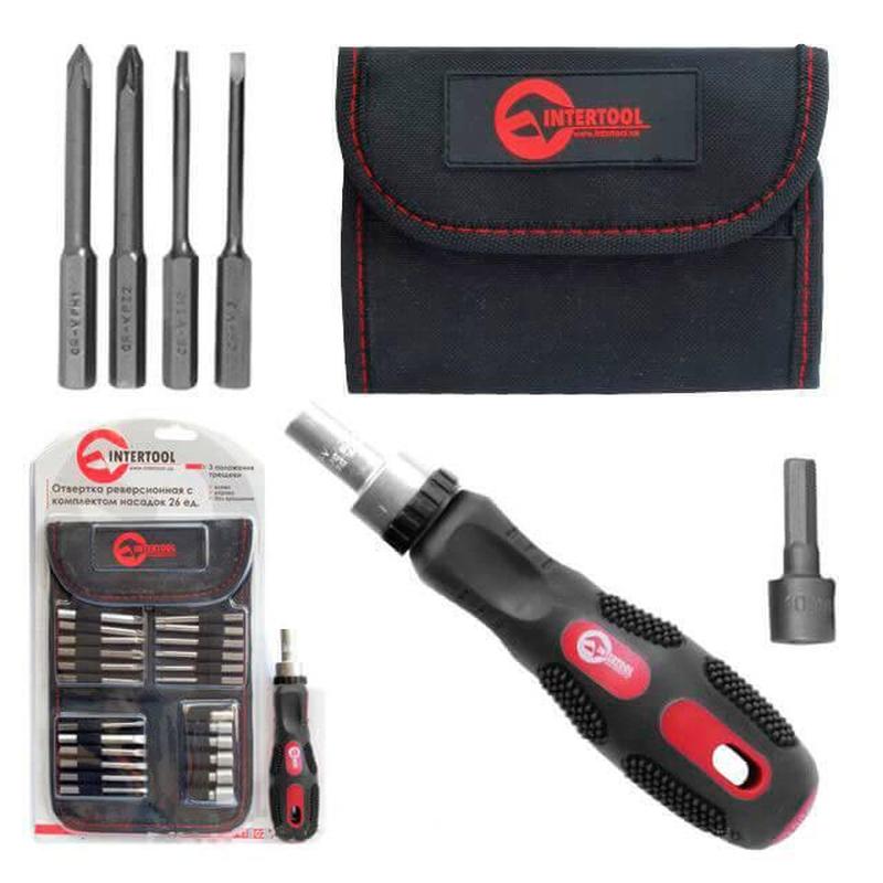 Викрутка реверсивна з комплектом насадок 26 од. intertool vt-1026