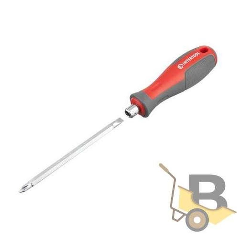 Матеріал стрижня викрутки - Cr-V стальДовжина викрутки - 210 ммДовжина стрижня - 100 ммТип насадок - PH2, SL6Матеріал рукоятки - двокомпонентна, прогумована