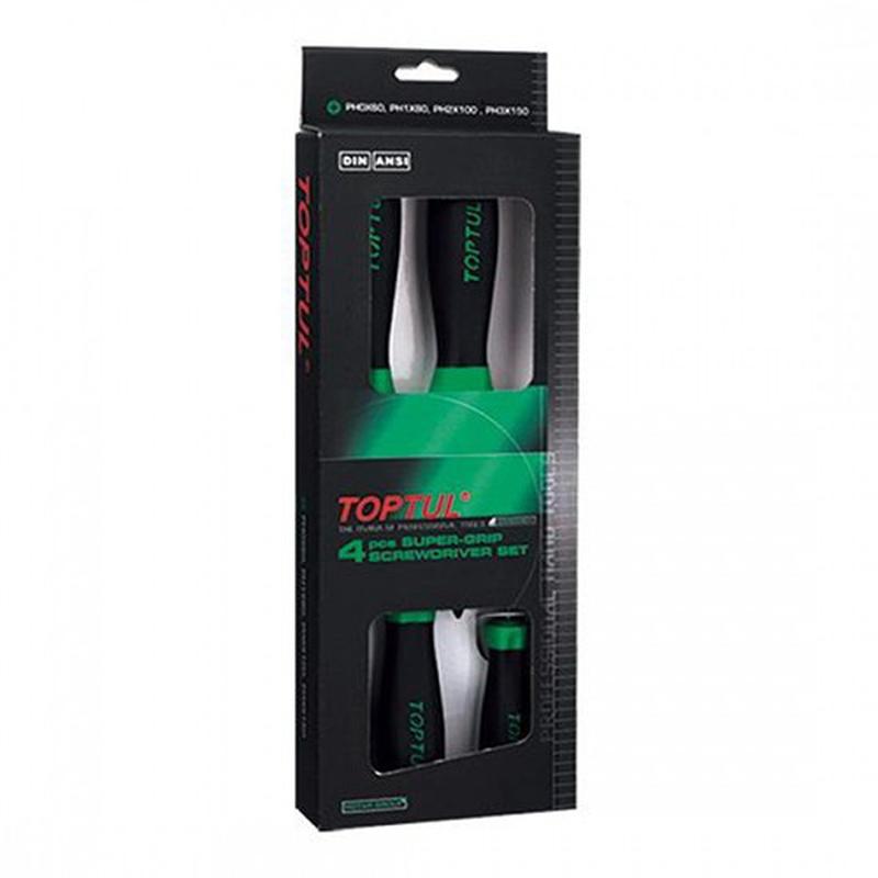 Набір хрестових викруток TOPTUL 4 од. GAAE0401. До комплектації набору 4 хрестові викрутки PH060 мм,PH1 80 мм,PH2 100 мм,PH3 150 мм.