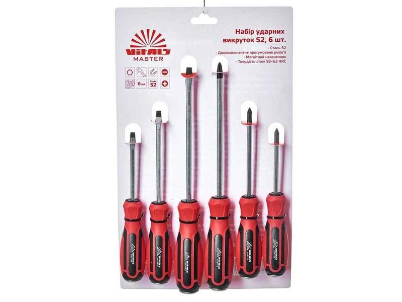 Материал стержня отвертки: сталь S2 Материал рукоятей: двухкомпонентная прорезиненная ручка Тип наконечника: магнитный Количество единиц: 6 Размеры: SL5.5x75; SL5.5x100; SL6.5x150; PH1x75; PH1x100; PH2x150 Длина, мм: 75; 100; 150