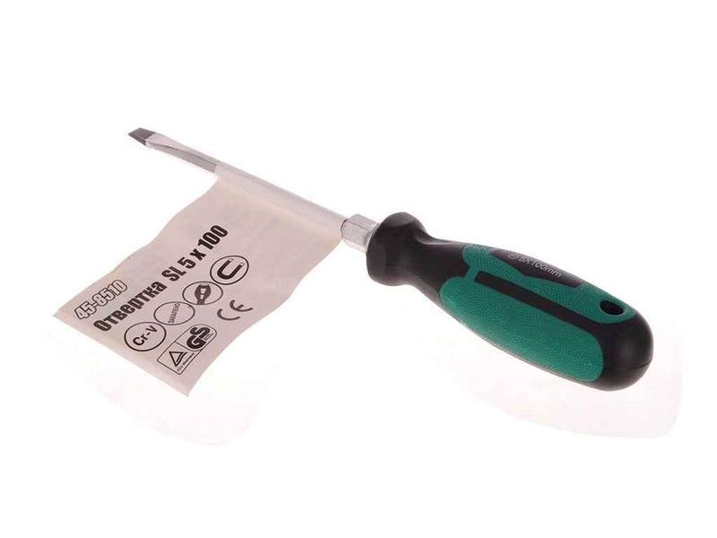 Призначена для монтажу і демонтажу різьбових зєднань. Профіль гвинтів або саморізів: Plane Slot (шліц). Має ергономічну двокомпонентну (гума пластик) протиковзку рукоятку з упором для великого пальця. Шестигранний стрижень виконаний з високоякісної хром-ванадієвої сталі, оснащений оксидованим магнітним накінечником.