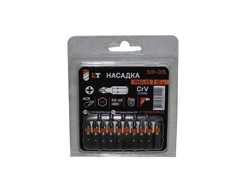 Насадки отвертки РН2*25мм, 1/4, CrV (10шт в блистере) ТМ LT PH2*25 мм, сталь CRV,насечки ACR, магнитная, твердость 58-60 HRC
