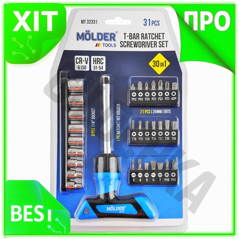 Ve отвертка реверсивная molder с new version набором бит 31 в 1 для монтажа и демонтажа кр...