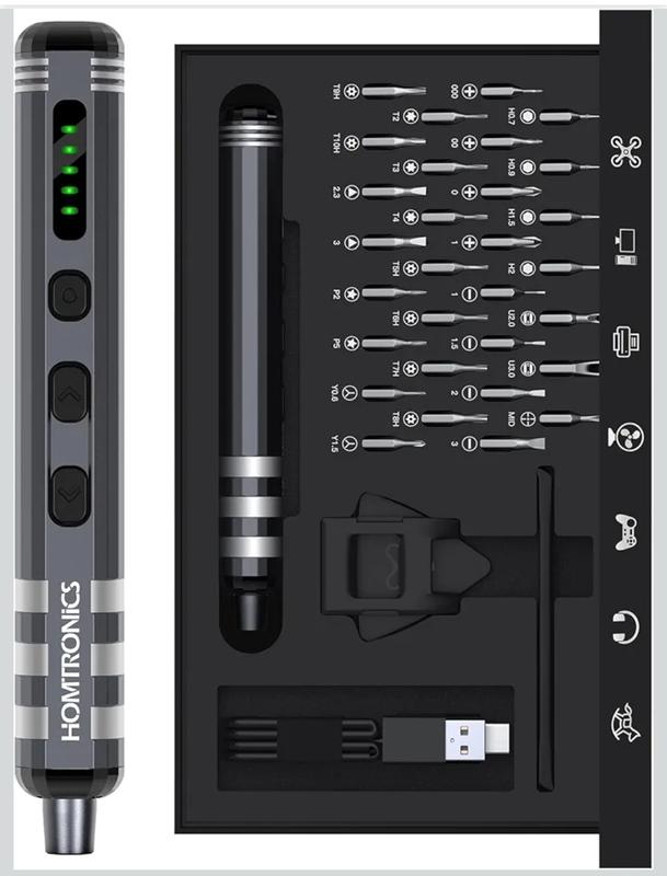 Електрична мінівикрутка 37 в 1, [крутий момент 0,05-0,25 Нм] Набір прецизійних електричних викруток Homtronics, світлодіодна підсвітка, перезаряджуваний набір інструментів для ремонту телефонів, ноутбуків,