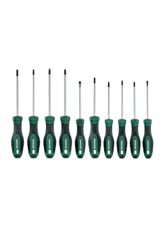 Набір викруток PARKSIDE призначений для побутових і професійних робіт з монтажу та ремонту. Інструменти виготовлені з високоякісної хром-ванадієвої сталі та сталі S2, що забезпечує міцність, зносостійкість і тривалий термін служби. Магнітні наконечники полегшують роботу з кріпленням, а ергономічні нековзні ручки гарантують комфортне та безпечне утримання інструменту. У комплект входять 10 викруток - 0,8х4х100 мм; 1х5,5х100 мм - пласкі; PH1x100мм; PH2x125мм; PZ1x100мм; PZ2х125мм; T20х100мм; T25х125мм; H4х100мм; H5x125мм, що дозволяє виконувати широкий спектр завдань. Набір підходить для роботи з різними типами гвинтів у домашніх умовах, майстерні або гаражі. Розмір: упаковки 27х23х6 см, довжина викруток приблизно 24 см. Виробник Німеччина.