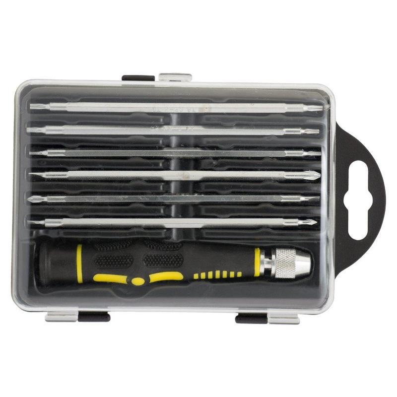 Набор отверток часовых 12в1 CrV (кейс) Sigma (4003011) предназначен для выполнения прецизионных работ по ремонту и обслуживанию часов, мобильных телефонов, ноутбуков и др. электронной техники. Двухсторонние биты изготовлены из высококачественной стали CrV, прошедшей термообработку. Эргономичная рукоятка обеспечивает удобный захват и эффективное вращение. Особенности: - CrV сталь; - С удлинителем. 12 предметов: - SL1.5-PH00, SL2.5-PH0, SL3.0-PH1; - H1.5-T6, H2.0-T7; - T8-T9. Купить набор отверток часовых Sigma Вы можете, оформив заказ в нашем интернет- магазине с помощью простой формы, доставка осуществляется по всей Украине. Если у Вас возникли вопросы, Вы можете позвонить по указанным номерам телефонов или заказать обратный звонок. Специалисты нашего интернет-магазина предоставят Вам подробные консультации и помогут сделать правильный выбор.
