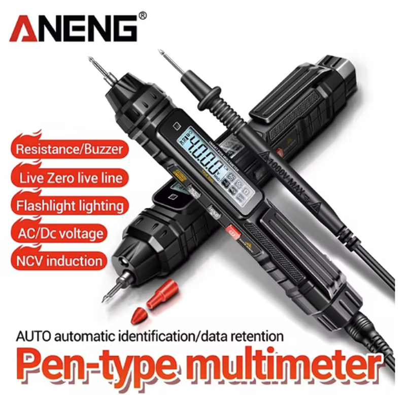 ANENG A3005 представляет собой интеллектуальный высококлассный, портативный мультиметр карманного типа с определением истинных среднеквадратичных значений измеряемых величин. Прибор позволяет точно измерять постоянное и переменное напряжения, сопротивление. Имеет функцию прозвонки цепей, диодного теста, безконтактного определения чередования фаз, бесконтактного детектора напряжения, опрежеления фазного и нулевого проводников. Инструмент оснащен цифровым дисплеем с подсветкой, а также фонариком, что позволяет легко работать и считывать показания в темноте. Имеет функцию автоматического отключение после 15 минут бездействия. При измерении электрических величин данный прибор автоматически определяет их диапазон. Для питания устройства используется две батареи типа ААА (НЕТ В КОМПЛЕКТЕ). Особенности: 1. Универсальное автоматическое измерение: Универсальный дизайн мультиметра перьевого типа гарантирует точное измерение основных электрических параметров: от напряжения до проверки целостности цепи и проверки диодов. Благодаря функции автоматического выбора диапазона вы можете быть уверены, что каждый раз будете получать точные показания. 2. Быстрый отклик и точность: Цифровой мультиметр на 4000 отсчетов, имеет скорость выборки 3 раза в секунду и высокую точность измерения. 3. Простота в эксплуатации: Прибор имеет четкий 3 3/4-битный ЖК-экран, который отображает легко читаемые измеренные значения, доступный фонарик, функция сохранения данных, звуковой сигнал при использовании. 4. Бесконтактное обнаружение NCV: Прибор имеет встроенный датчик и красный светодиодный индикатор, которые помогают определить наличие поблизости переменного напряжения. Чем ближе вы находитесь к источнику питания, тем активнее сигнализация. 5. Обнаружение FireWire: Встроенная в мультиметр функция обнаружения фаз позволяет легко измерять и идентифицировать фазные, нейтральные и заземляющие провода. 6. Обнаружение обрыва цепи: Мультиметр оснащен инновационной функцией обнаружения обрыва цепи, которая позволяет легко идентифицировать обрыв цепи на проводе с помощью бесконтактного режима обнаружения напряжения. Эта функция делает его незаменимым инструментом для профессиональных электриков и любителей «сделай сам». 7. С функцией фонарика: Ручной мультиметр оснащен ярким фонариком, который помогает эффективно освещать темные и труднодоступные области, что позволяет с легкостью работать в условиях низкой освещенности. Благодаря эргономичному дизайну и компактным размерам его можно брать с собой куда угодно, что дает вам возможность работать в самых разных условиях. 8. Качественные материалы и портативный размер: Измеритель изготовленный из высококлассных электронных компонентов и прочного пластикового корпуса, имеет легкий вес (57 г) и удобный для переноски карманный размер, удобный для захвата. 9. Широкое применение: цифровой мультиметр - удобный инструмент и помощник для безопасного и точного тестирования, диагностики и решения различных автомобильных и бытовых электрических задач. Характеристики: Торговая марка: ANENG. Модель: A3005. Материал корпуса: АБС. Метод измерения: двойное интегральное аналого-цифровое преобразование. Время выборки: около 3 раз в секунду. Индикация превышения диапазона: «OL» отображается в самом верхнем положении. Напряжен