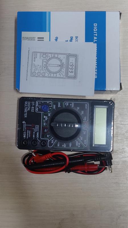Чудовий вимірювальний прилад — мультиметр DT-832, є популярною та доступною за ціною моделлю тестера. Прилад має невеликі габарити, простий в експлуатації та забезпечить Вам точні виміри різних величин. Цифровий тестер DT-832 допоможе Вам виміряти напругу, силу струму, опір, протестувати діоди, транзистори та протелефонувати ланцюг на наявність з’єднання. Основні переваги мультиметра DT-832: — захист від перевантажень; — наявність індикатора заряду батареї; — 3 1⁄2 розрядний дисплей із висотою знака приблизно 13 мм; — точність вимірювань за умови експлуатації за t 23±5 °C; — звукова індикація продзвінки; - вбудований генератор: 50Гц; — широкі діапазони вимірювань різних величин.