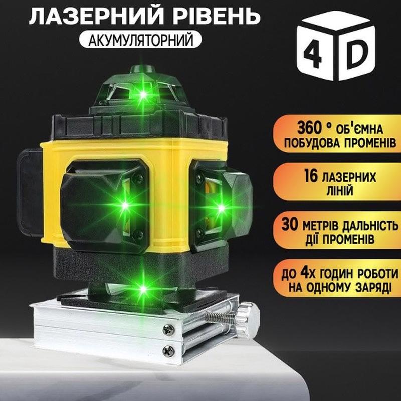 Рівень лазерний лінійний нівелір акумуляторний laser 4d, 16 ліній, робоча відстань 30м, у...