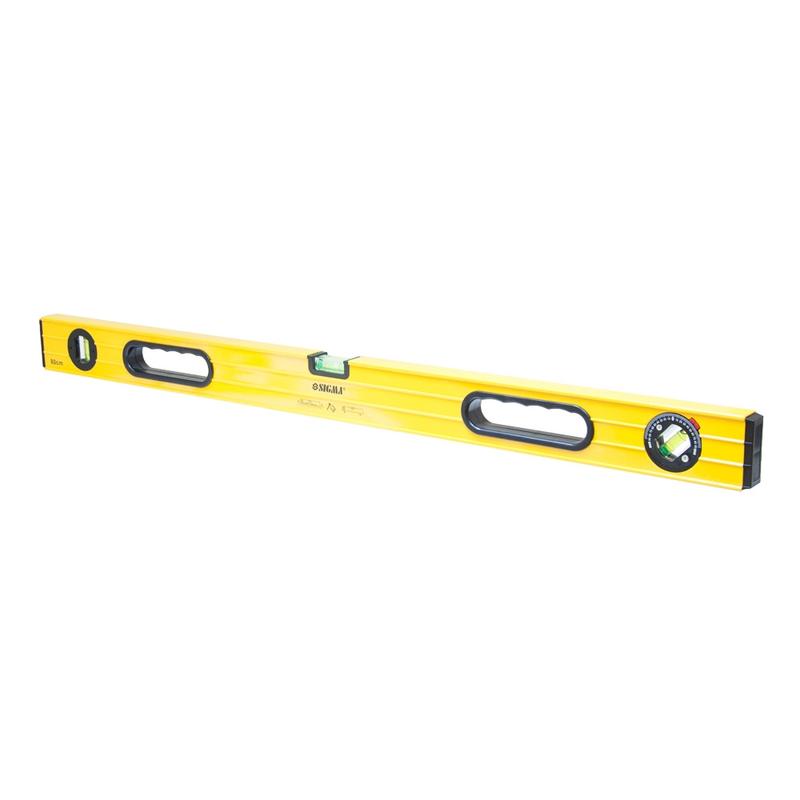 Рівень із поворотною капсулою, 2 ручки 80 см (3723081) призначений для визначення горизонтального та вертикального розташування поверхонь, а також горизонтальності підлог, балок і прогінів. Виготовлений з алюмінію, має лінійку та три ампули. Допустиме відхилення: 0.057 градуса (що за правильного розташування еквівалентно 1.0 мм на 1 м). Особливості: - Фрезерована поверхня.