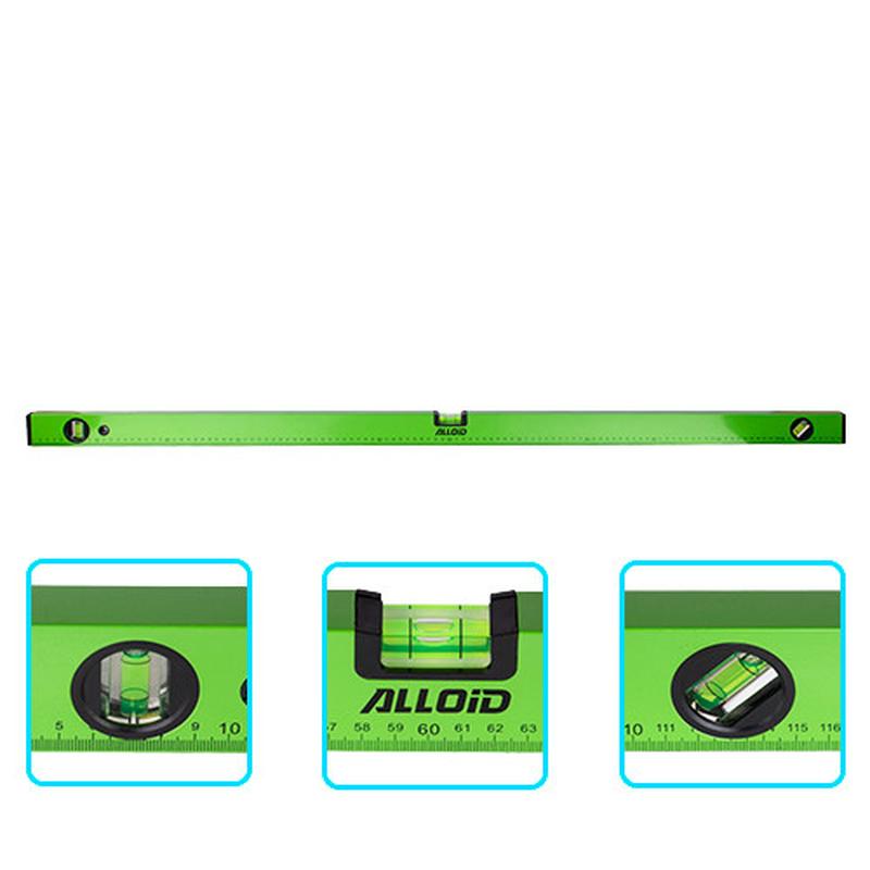 Будівельний рівень Alloid з трьома капсулами 120см — це надійний інструмент для точного визначення горизонтальності, вертикальності та нахилу поверхонь. Його алюмінієвий корпус забезпечує довговічність, а яскравий зелений колір робить інструмент помітним навіть на завантаженому об'єкті. Високоточні капсули гарантують професійний результат у будівництві, монтажі й ремонті. Застосування: - Вирівнювання конструкцій під час будівництва - Монтаж меблів, полиць, рейок - Столярні роботи та точне складання деталей - Внутрішні та зовнішні ремонтні роботи - Використання у побуті та на СТО Характеристики будівельного рівня Alloid: - Кількість капсул: 3 (0°, 90°, 45°) - Матеріал корпусу: анодований алюміній - Довжина: 120 см - Шкала: міліметрова, нанесена по всій довжині - Колір: яскраво-зелений або червоний для підвищеної видимості - Додатково: зручні отвори для захвату, можливе наявність магнітів у деяких моделей - Капсули: точно відкалібровані, забезпечують максимальну точність - Віконце зчитування: бокове або верхнє для зручності у вертикальному положенні - Форма корпусу: з ребрами жорсткості для стійкості до деформацій - Тримачі: антиковзкі, для надійного захвату - Мітки: чіткі, не стираються з часом - Баланс: оптимально збалансований для роботи однією рукою