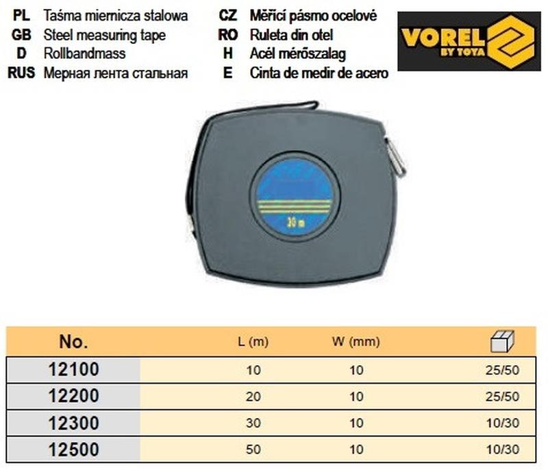 Рулетка стальна l=20 м w=10 мм vorel-12200