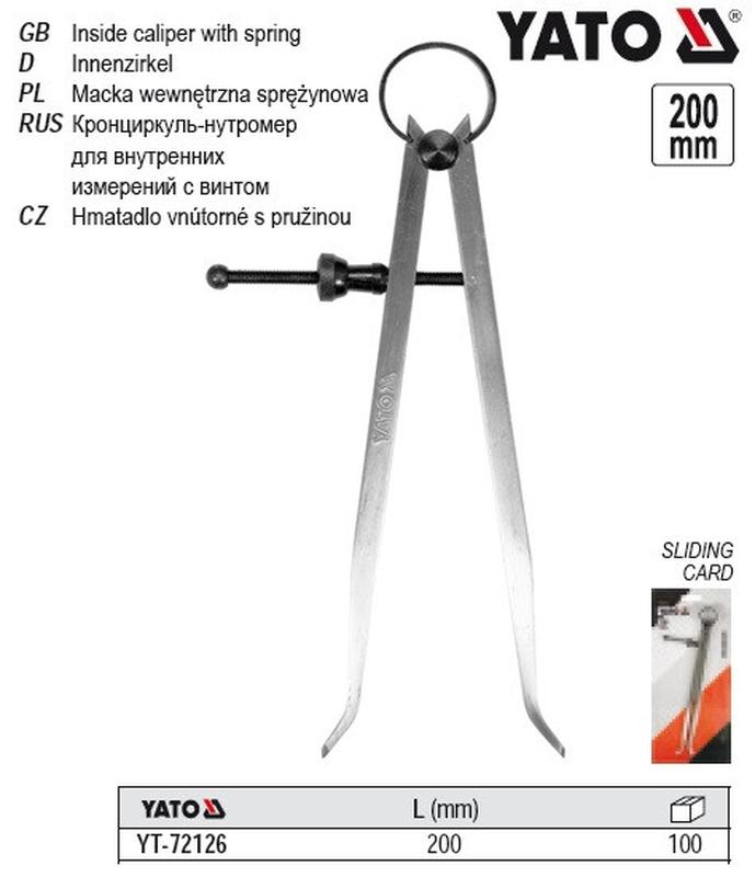 Кронциркуль внутрішні виміри l=200 мм гвинтовий фіксатор yato польща yt-72126