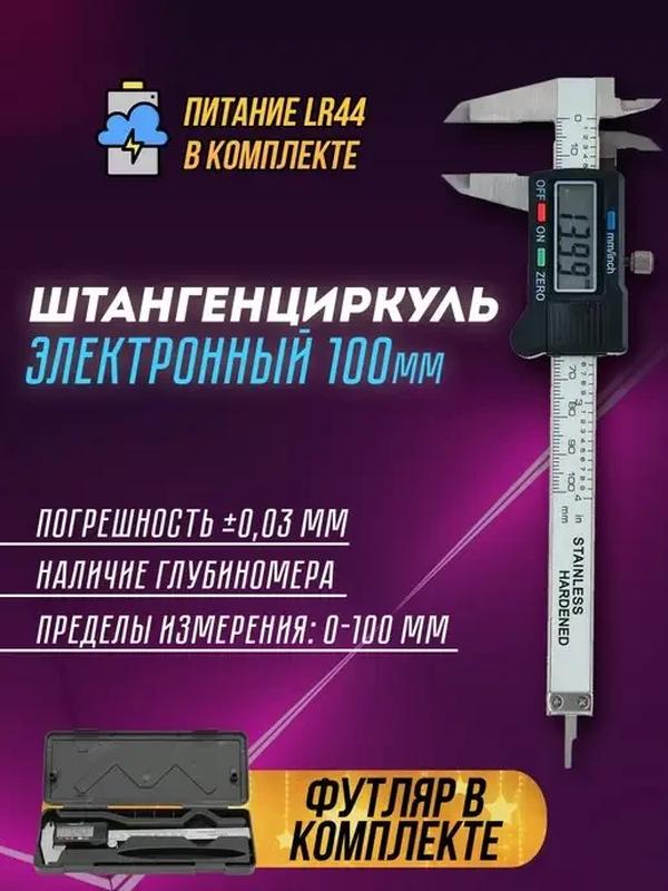 Штангенциркуль цифровий Digital Caliper Електронний штангенциркуль, завдяки різним формам вимірювальних поверхонь, відноситься до універсальних вимірювальних приладів. Цифровий штангенциркуль використовується в різних галузях (машинобудування, електротехніка, медицина, мистецтво тощо) для проведення внутрішніх та зовнішніх вимірів, вимірів глибини отворів, розмітки деталей тощо. У роботі штангенциркуля застосовується так званий прямий метод виміру - отриманий результат прямо відповідає виміряній величині. Залежно від моделі та призначення, штангенциркуль може мати різні вимірювальні поверхні та конструкцію. Характеристики: - Матеріал: Нержавіюча сталь - Встановлення приладу на нуль у будь-якому положенні - Зручний РК-дисплей - Діапазон вимірювань: 0-150 мм - Точність вимірювання: 0,01 мм - Повторюваність: 0,01 мм - Похибка: 0,02 мм - Максимальна швидкість вимірювання: 1 м/с - Живлення: 2 х 1,5 SR44 - Розмір: 240 х 80 х 12 мм - Цей штангенциркуль легкий і точний у використанні - За допомогою вбудованого дисплея Ви точно зможете виміряти довжину, ширину, діаметр, глибину - Використовується як для зовнішніх так і для внутрішніх вимірювань Також є можливість вимірювання глибини