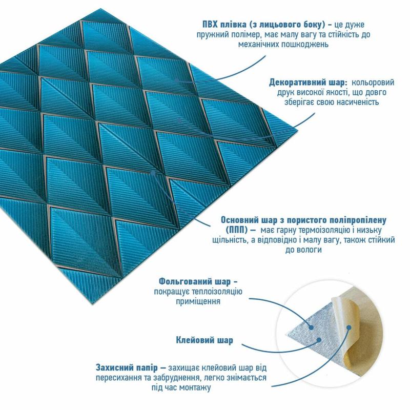 Панель стінова 3d 700х700х4мм ромб синій (d) sw-00001985