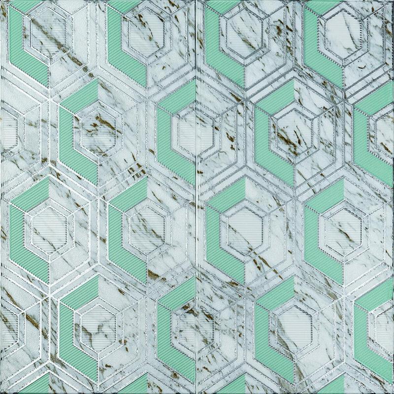 Панель стінова 3d 700х700х4мм сіро-зелені стільники мармур (d) sw-00002006