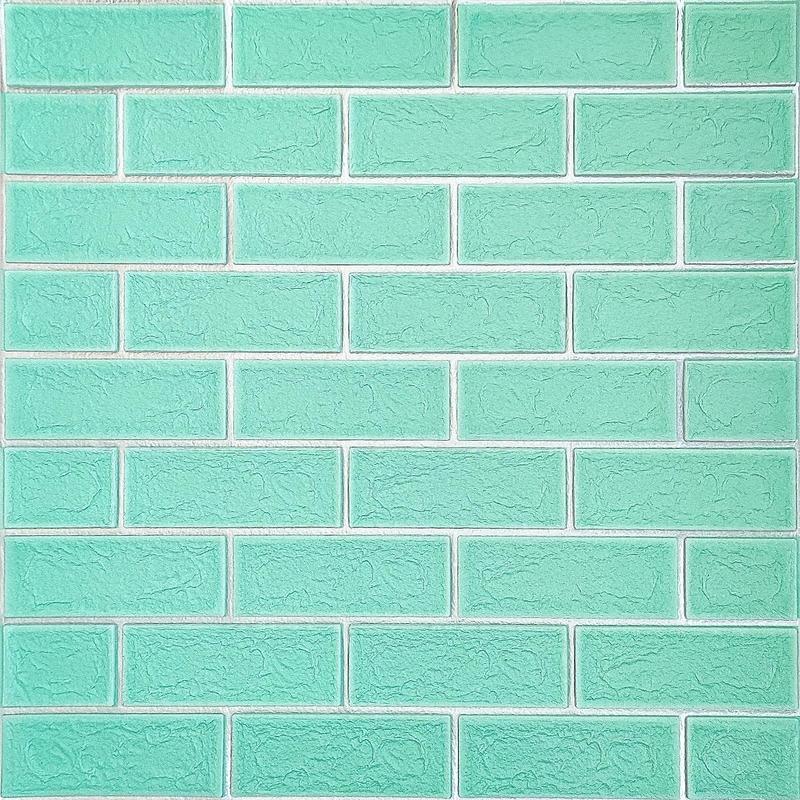 Самоклеюча 3d панель зелена цегла зі срібною смужкою 700х770х5мм