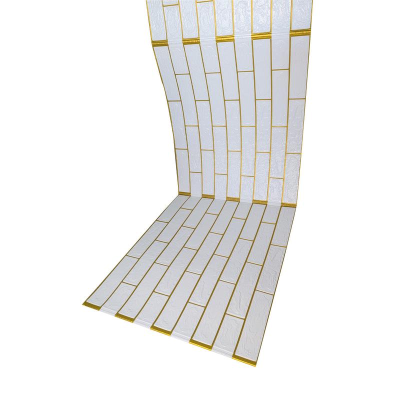 3D панелі самоклейки цегла контраст білий-золото дозволять Вам зробити ремонт у приміщенні самостійно за 30 хвилин! Матеріал: Спінений поліпропілен із захисним шаром ПВХ плівки. Це екологічний матеріал, що є гіпоалергенним, не виділяє шкідливих речовин, без запаху. Має пористу структуру, що дозволяє панелям утримувати тепло, поглинати звуки, гасити вібрації. Застосування: Завдяки своїм брудо та водовідштовхувальним властивостям можуть бути встановлені на кухні та у ванній кімнаті. Якщо у вас нерівні стіни та недоліки ремонту - ці наклейки вам ідеально усе замаскують. Завдяки своїй м'якій структурі, запобігають травматизму на кутах, тому ваші діти будуть у безпеці. Легкий спосіб прикрасити вашу оселю. Чи то ванна, вітальня, дитяча, передпокій, кухня або балкон. Властивості: - М'які - Підходять для будь-яких кімнат - Не виділяють шкідливі речовини - Гіпоалергенні - Підходять для нерівних поверхонь - Легко встановити, не вимагає спеціалістів - Брудо та водовідштовхувальні - Зменшує рівень шуму у кімнаті - Запобігають травмам - Миються - Сертифіковані Інструкція з встановлення: 1. Протерти стіну від пилу 2. Зняти захисну плівку на звороті панелі 3. Приклеїти