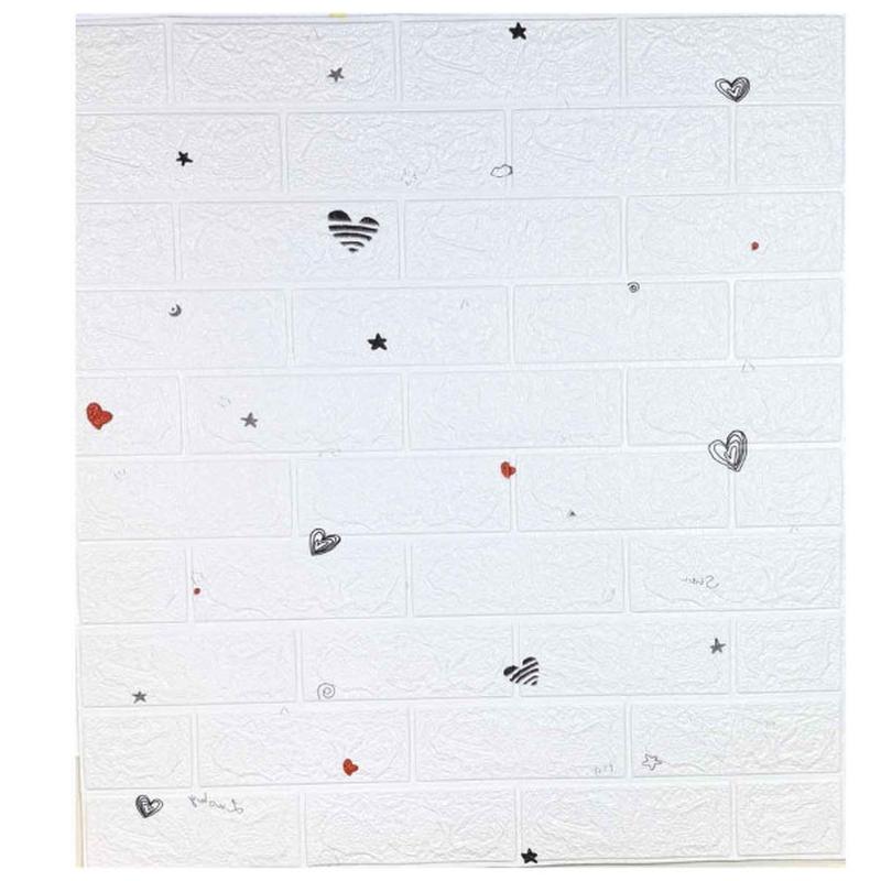 Самоклеюча 3d панель біла цегла сердечка+зірки 700х770х3мм