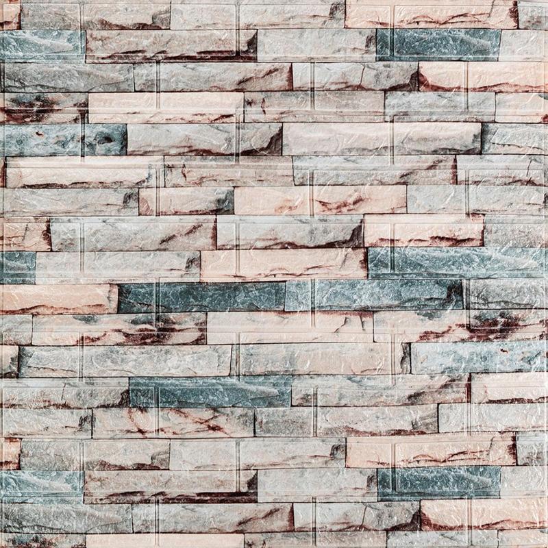 Самоклеюча панель 3d бежево-блакитна цегла катеринослав 700*770*3мм
