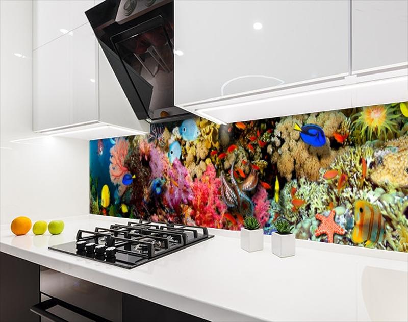 Панель на кухонний фартух під скло з морськими глибинами, з двостороннім скотчем 62 х 205...