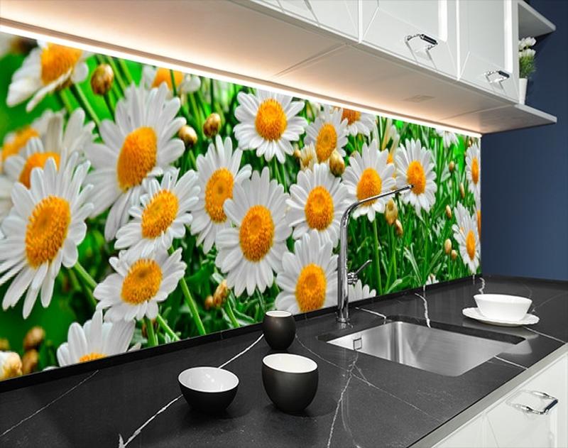 Панель кухонні, замінник скла ромашки в полі, з двостороннім скотчем 62 х 205 см, 1,2 мм