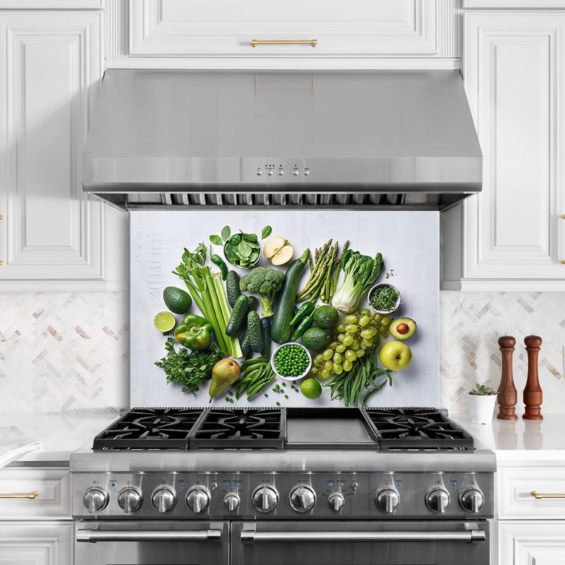 Стеклянная панель для кухни "свежесть в зелени" 60х40см