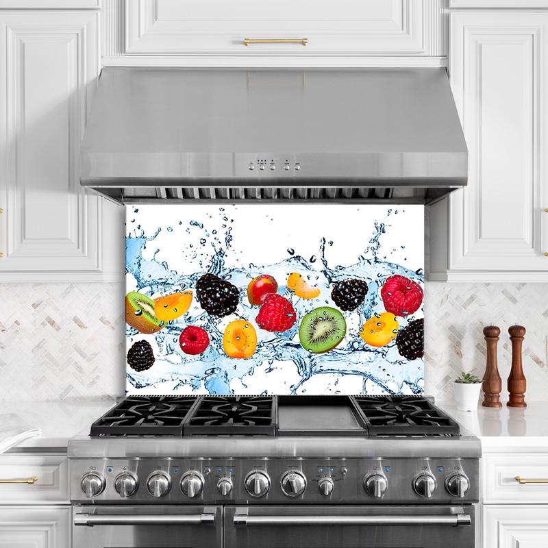Стеклянная панель для кухни "всплеск фруктов" 60х40см