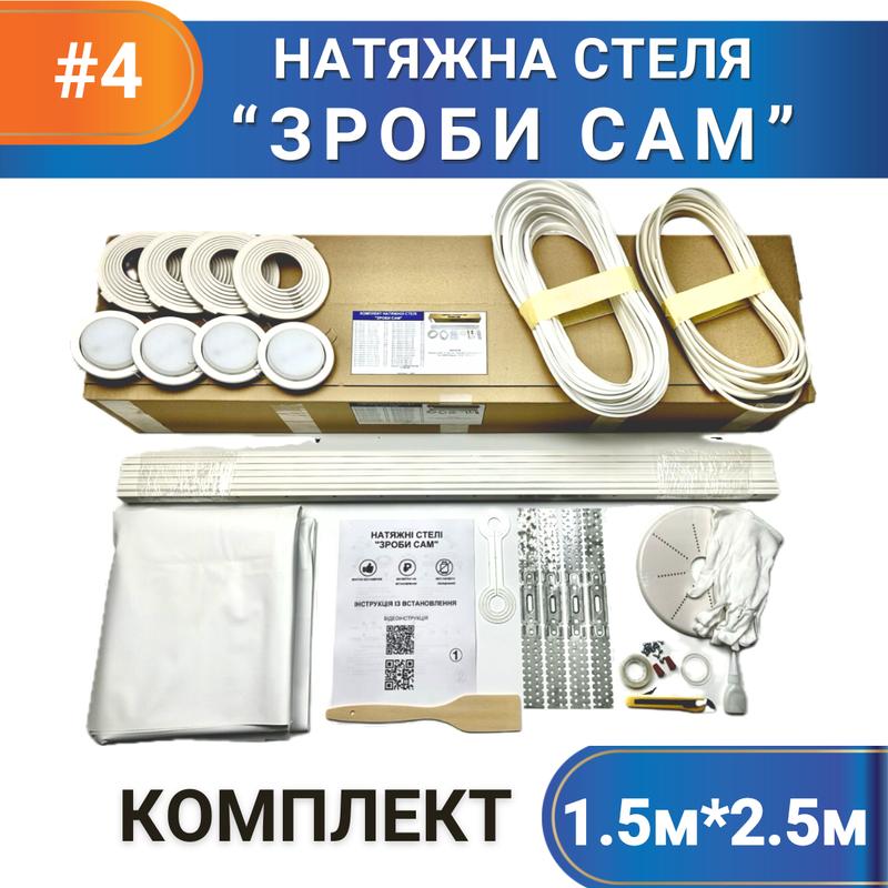 Комплект №4 (1,5м*2,5м) натяжного потолка сделай сам, без нагрева, білий мат