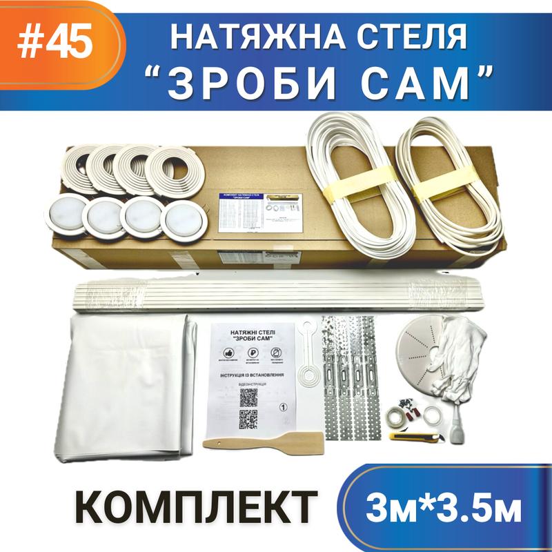 Комплект №45 (3м*3,5м) натяжної стелі зроби сам, без нагріву, білий мат