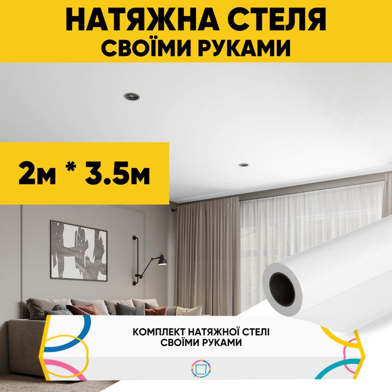 Натяжна стеля (2м*3,5м) своїми руками біла матова. натяжна стеля зроби сам комплект №24