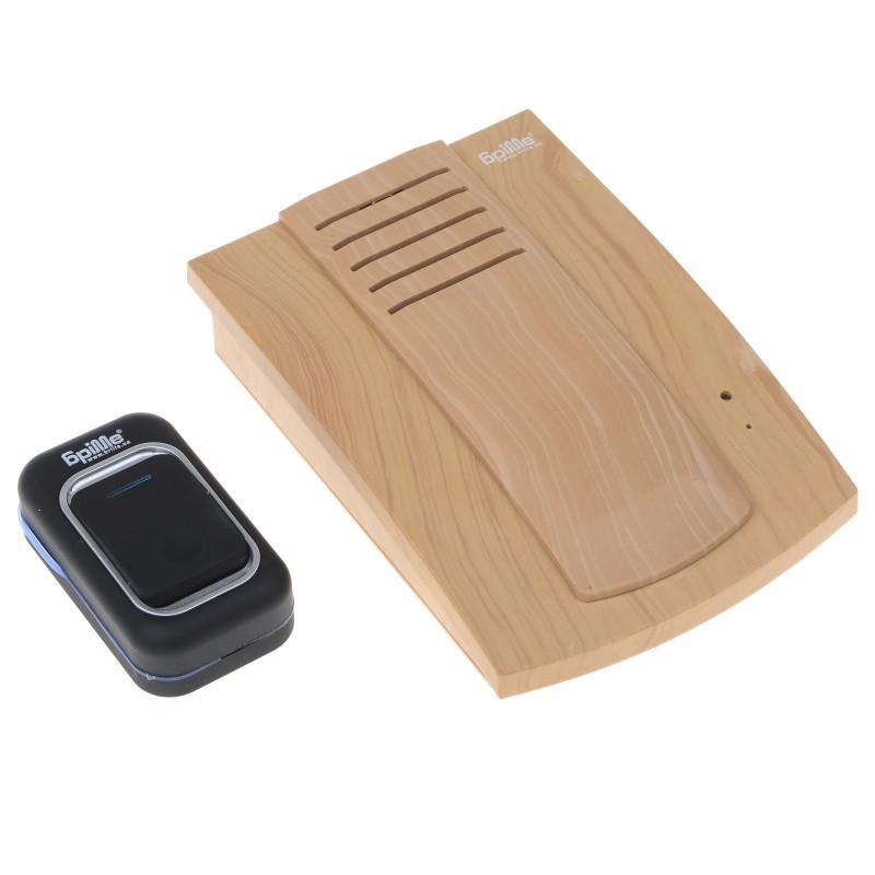 Бездротовий дверний дзвінок від ТМ Brille DB-9 компактний, зручний, а головне - гучний. Виготовлений із пластику, пофарбований під дерево. Складається з двох компонентів - передавача (кнопки) і приймача (дзвінка). Даний дзвінок бездротовий, з кнопкою дзвінка його зв'язують радіохвилі. Це дозволяє легко і швидко встановити електричний прилад без прокладання проводів і свердління стін. Передавач встановлюють зовні біля дверей за допомогою м'якої липучки. Кнопка дзвінка вологозахищена, тому її можна сміливо монтувати на відкритому просторі. Сам дзвінок монтують на стіні всередині житлових приміщень, його навіть можна носити з собою. Кнопка і дзвінок працюють на відстані до 100 метрів. Про прихід гостей дзвінок повідомляє звуком і світлом. Динамічний гучномовець видає 25 гучних і дзвінких мелодій. Є можливість регулювати гучність дзвінка (3 режими). Завдяки тому, що він світиться, є зручним у використанні для глухих і людей похилого віку. Для роботи передавача (кнопки) необхідно використовувати лужну батарейку типу АА 12 В (входить в комплект), для роботи приймача (дзвінка) - три батарейки типу АА 1,5 (в комплект не входять). У статичному стані не споживає електроенергію, батарейки можуть прослужити рік, якщо дзвінком користуватися приблизно 20 раз в день. З таким дзвінком прихід гостей перетвориться на свято.