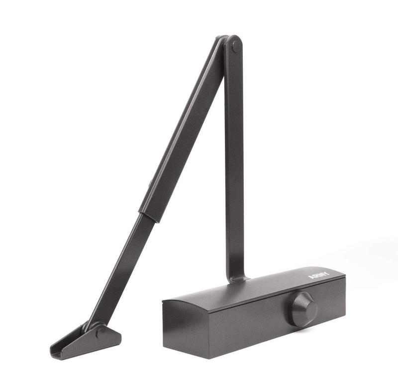 Дверний доводчик, максимальна вага дверей 90 кг, L = 1100 мм, двінезалежні регульовані швидкості, аналог Geze 1500. Коричневий Монтаж, регулювання, техобслуговування, ремонт повинен проводити кваліфікований фахівець. Необхідна перевірка деталей на міцність посадки і знос, затягування гвинтів кріплення і заміна дефектних частин. Як мінімум раз на рік необхідно змащувати рухомі деталі, перевіряти наладку і плавність ходу двері. Може знадобитися регулювання швидкості закривання при експлуатації в умовах низьких або високих температур.