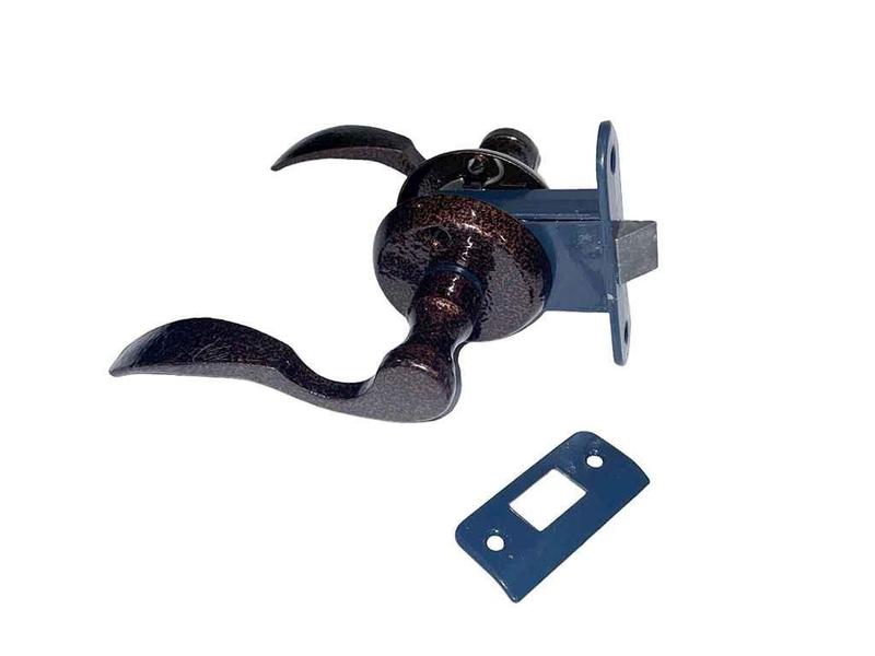 Засувка врізна. Призначена для установки на праві і ліві двері. Габаритні розміри корпусу замку, мм: 60x37x15. Комплектується панелями з фігурними ручками.