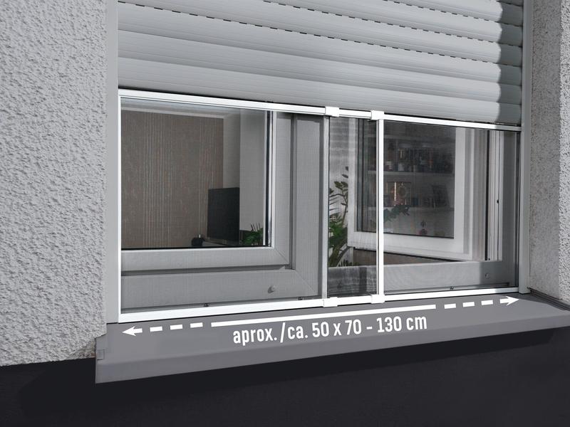 Розсувна антимоскітна сітка для ролет Powerfix в алюмінієвому профілі 50 х 70-130 см. Німеччина. Природний захист від комах при відкритому вікні. Висувний від 70 до 130 див. Щіткове ущільнення по всьому периметру для ідеального прилягання. Дуже легко поміщається в направляючу шторки. Дихаючий і стійкий до УФ-променів і світла. Поставляється в повністю зібраному вигляді.