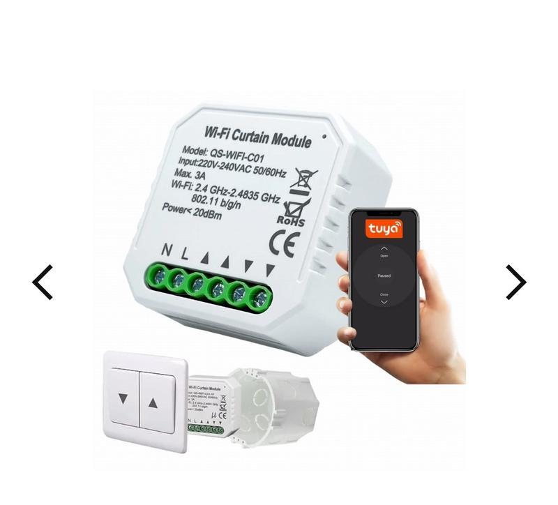 Кілька примірників у наявності Інтелектуальний модуль керування рольставнями з WiFi Контролер рольставен QS-WiFi-C01 — це модуль, який дозволяє керувати електричними рольставнями за допомогою програми для смартфона. Модуль з WiFi додає функцію підтримки бездротового зв'язку для традиційного комутатора. За допомогою програми TUYA Smart для мобільних пристроїв можна програмувати сцени, утримуючи вимикач, і дистанційно активувати рулонні штори. Жалюзі можна, наприклад, піднімати на певний відсоток висоти та в певний час. Модуль працює з голосовими помічниками Amazon Alexa, Google Home, IFTTT. ✅ Вибрані сцени роботи модуля: - Встановлення часу пробудження підняттям жалюзі - Поступове опускання жалюзі в сутінках - Працює з голосовими помічниками, щоб жалюзі можна було запустити вашим голосом ✅ Специфікація: Модель: QS-WIFI-C01 Модуль управління жалюзі Бездротове підключення: WiFi 2,4 ГГц - 2,4835 ГГц Напруга 220-240В змінного струму Макс.: 3A 750 Вт Робоча температура: -10ºC - +40ºC Температура корпусу: максимум +80ºC Діапазон бездротового зв'язку: до 200 м Він поміщається в банки fi60 Розміри: 46*46*18 мм Рл