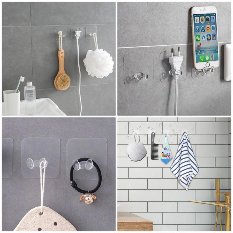 Підвісні крючки для кройнштейна вилки, кухоного приладдя, рушників, аксесуарів для ванної. Розмір 6х6см. Ціна за набір 4шт Гарно клеїться на будь яку поверхню, не потрібно сверлити стіни