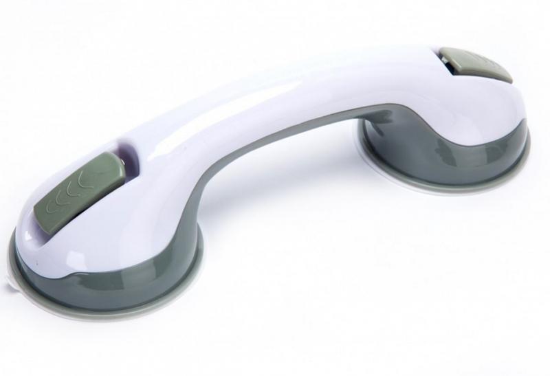 Удобная пластиковая ручка имеет на подошве две присоски, которые приводятся в действие двумя рычажками, расположенными на самой ручке. Одно движение, и ручка поручень надежно закреплена. Ее можно устанавливать на кафель и стекло, только не на деревянную поверхность. Она станет надежной опорой: в ванной; в туалетной комнате; на лестнице. Может устанавливаться, как вертикально, так и горизонтально. Ручка придаст уверенности детям, которые бояться скользкой поверхности. Преимущества: устанавливается в течение несколько секунд; для крепления не требуется сверление; возможность устанавливать в любом месте, вертикально и горизонтально; надежная опора, но следует помнить, что это опора, а не турник, выдерживающий вес человека; создает комфорт и расширяет возможность передвижение, однако устанавливать такую опору на движущихся поверхностях не стоит.