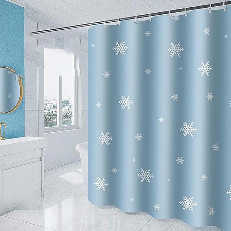 Красивая и практичная штора для душа и ванной голубого цвета со снежинками, размером 180х200 см. Превосходная по качеству, сшита из полиэфирного материала, который хорошо отталкивает воду и не промокает. Полиэфирное волокно–самый долговечный и прочный материал, прост в уходе. Имеет специальное покрытие, которое препятствует образованию следов после высыхания капель воды и образование бактерий. С утяжелительным шнуром! Это позволяет шторке держать форму и сохранять заданное ей положение. Уход : - ручная стирка ниже 40 градусов; - не отжимать; - глажка негорячим утюгом до 150 градусов; Размер: 180х200 см Кольца в комплекте (12шт.)