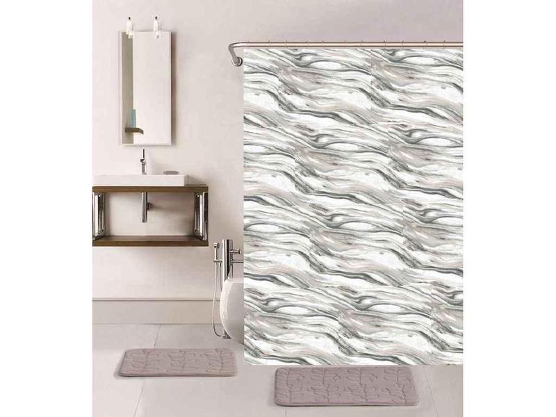 Завіса для душу поліестер 100%; 80 г/кв.м; звичайний водонепроникний; 4 сторони оверлок; фурнітура прозорий pp 100%; 12 гачків; 12 люверсів