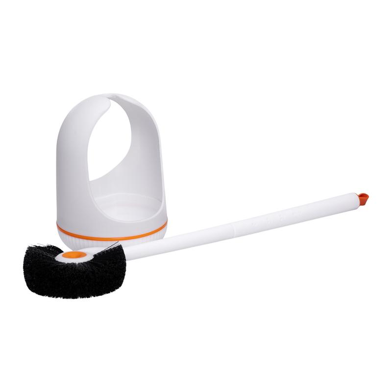 Цей набір складається з туалетної щітки з довгою ручкою та вертикального тримача, призначеного для зберігання інструмента після використання. Ручка має петлю на верхньому кінці, що дозволяє підвісити щітку або зручно тримати її під час очищення. Робоча частина щітки оснащена щетиною середньої жорсткості, розташованою щільно для ефективного видалення забруднень з внутрішніх поверхонь унітазу. Тримач має стійку конструкцію з отвором для щітки, що дозволяє зберігати її у вертикальному положенні. Внутрішня частина тримача розрахована на те, щоб щітка не торкалась дна, що сприяє вентиляції та зменшенню накопичення вологи. Зовнішній корпус гладкий, без зайвих елементів, що полегшує догляд і очищення. Набір займає мінімум простору та може розміщуватись на підлозі або поруч із унітазом. Основні характеристики йоржика з підставкою для чищення унітазу: Висота: 53 см; Матеріал: пластик; Спосіб встановлення: підлоговий. Особливості щітки для миття унітазу: Компактний набір зручно розміщується поруч із унітазом, не займаючи багато місця. Утримувач тримає щітку у вертикальному положенні, забезпечуючи чистоту навколо. Ергономічна ручка з покриттям, що не ковзає, робить прибирання комфортним. Середня жорсткість щетини ефективно справляється із забрудненнями. Стрижень легко очищається і не схильний до впливу вологи. Щітка зберігається у закритому положенні, що підтримує гігієнічність та зменшує запахи. Завдяки простій формі та функціональності, набір підходить для використання в домашніх санвузлах, готельних номерах або офісних приміщеннях. Його конструкція забезпечує зручність у щоденному догляді за сантехнікою, а також підтримує порядок у зоні зберігання. Наявність петлі та компактного тримача дозволяє інтегрувати набір у різні типи інтер'єру без потреби в додаткових аксесуарах.
